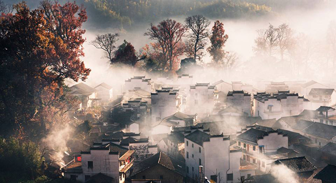 早上前往呈坎古镇日出、古村落、民居,建筑等;