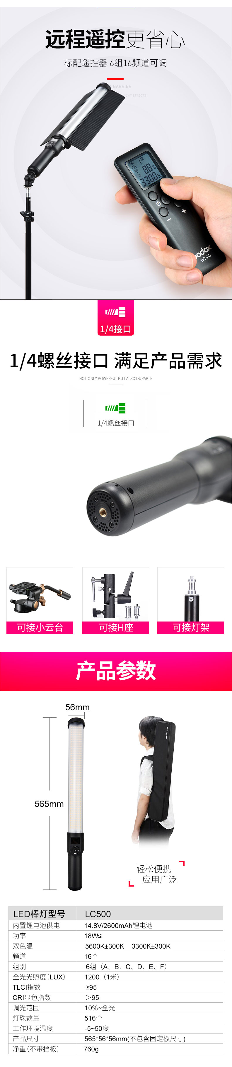 神牛LED补光棒 LC500棒灯 冰灯摄影灯手持补光灯人像外拍录像便携拍照灯